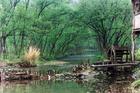 九丈甸园,这地名取得还真有一番情趣,既有豪爽之气又不失雅致韵味,那么楠溪的这一处又会有怎样的景致呢?伴随着满肚子的好奇,我们来到了九丈甸园的溪边。 到了楠溪,若不坐坐这儿的竹筏,便枉此一行了。撑竹筏的老爷爷皮肤黝黑,干瘦干瘦,脸上写满着淳朴与沧桑:只见他手握撑杆,往岸边一点,左一撑右一撑,这一排竹筏便荡悠悠地漂在清澈的江面上了! 前方的溪石垒得较高,水流自然显得颇为湍急,小竹筏左一下右一下大幅度地摇摆着,周围的水花泛着白沫,溅起了一串串小水珠,引得我和弟弟兴奋得大叫。在一阵湍急后又恢复了平静:小竹筏轻轻地漂浮在江面上,水面泛起了涟漪,一圈圈水波轻轻地向外漾开了。这时的楠溪仿佛是一匹绸缎柔软自然地铺在石块之上,静静地散发出一种不可言喻的美。 我情不自禁地俯下身子,将手伸入水中,五指微微张开,任凭细腻的水温柔地轻抚着我的指尖,顿时一股清新凉爽之感从指尖贯穿全身,驱散了浑身的疲惫倦乏和心头的烦躁。心,在一瞬间舒缓下来。我抬起头来,纯蓝色的天空衬着一朵朵棉花糖似的柔软轻盈的云朵;两岸树木苍郁,幽静的树林中竟传出优美的琴声,更为这秀逸的景致添上了一笔柔情。 我双手支在竹椅上,小心翼翼地站了起来:远处的水面宛如一面明镜,没有一丝波澜,但弯弯曲曲看不到尽头。看着头顶的蓝天云卷云舒,脚踏着一叶竹筏,耳畔边是拨动心弦的琴声和着涓涓的流水声,夹杂着阵阵扑面而来的清风,我两眼微闭,融入自然,心此刻是如此的释然! 时间流淌,天空中的“棉花糖”在暮色中越隐越深,我们在品尝了一顿山里美食后,入住藏身在一片竹林之中的旅店。竹楼、青瓦,这旅店倒与武侠小说中的客栈有几分相似,透出浓浓的古韵。中秋佳节还未来得及赏月,此刻在亭台楼阁中弥补着中秋的遗憾。十五的月亮十六圆,月,很美!乳白色的月光渲染着墨云。小竹楼的屋顶笼罩着一层幽幽的月光,还真有几分“疑是地上霜”的韵味,耳边是阵阵虫鸣,我的心醉在一片月色之中,没有城市的喧嚣,有的只是一份心灵的宁静! 夜,更深了,伴随着明亮的月色渐入朦胧,我,也进入了梦乡。