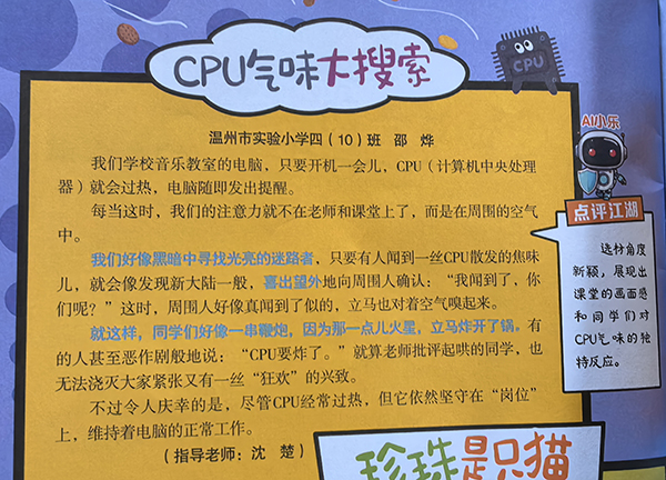 邵烨佳作《CPU气味大搜索》发表《快乐作文与阅读》