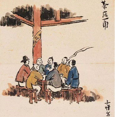 茶博士坐在门口拉胡琴。除雨声外,这是我们当时所闻的唯一的声音。拉的是《梅花三弄》,虽然声音摸得不大正确,拍子还拉得不错。这好像是因为顾客稀少,他坐在门口拉这曲胡琴来代替收音机作广告的。可惜他拉了一会就罢,使我们所闻的只是嘈杂而冗长的雨声。为了安慰两个女孩子,我就去向茶博士借胡琴。"你的胡琴借我弄弄好不好?"他很客气地把胡琴递给我。