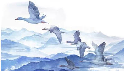 朋友一面把饼干丢到空中,一面说:“从前到夏天快结束时,大雁就准备南飞了,它们会在南方避寒,一直到隔年的春天才飞回来,不过,这里的大雁早就不南飞了。”