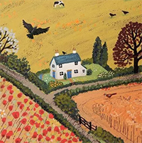 壶里又出来1个女小人和3个孩子小人。5个小人从围裙兜里取出极小的菊苗,开始种植。手绢上,眼看着长出一片绿色的旱田。不一会儿,菊苗长大,能看到星星点点的花蕾。花蕾开了,白菊、黄菊、紫菊……很快,手绢成了五颜六色的菊花田。5个小人脱下帽子摘起花朵来。帽子装满后,他们爬上梯子,把花倒进壶里。