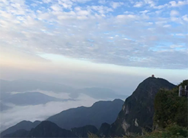 费尽周折终上山顶,金顶之上佛门圣地,仙气缭绕阳光刺的睁不开眼。忽而雾气重重冷入骨,忽而晒得发丝蓬起。但独我一人走向最高处,几秒之后云海翻涌,蓝白交接纯净之色,瞬间感觉置身于仙境之中,令人流连忘返。