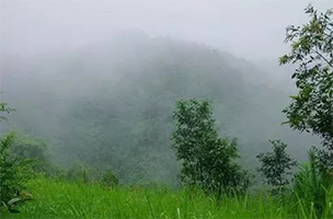 “树林子像块面团了, 四面都在鼓,鼓了就陷,陷了再鼓;接着就向一边倒,漫地而行的;呼地又腾上来了,飄忽不能固定;猛地又扑向另一边去,再也扯不断,忽大忽小,忽聚忽散:已经完全没有方向了。然后一切都在旋,树林子往一处挤, 绿似乎被拉长了许多,往上扭,往上扭,落叶冲起一个偌大的蘑菇长在了空中。哗地一声,乱了满天黑点,绿全然又压扁开来,清清楚楚看见了里边的房舍、墙头。