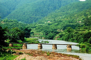 我走过的石板桥,是三根长长的条石并排铺成桥面,因为求安全的心理,我走的最多的是中间部分。两根条石之间有小小的缝隙,可以窥见下面流动的溪水。桥面故意凿得坑坑洼洼,具有防滑功能,只是长年累月被脚踩被雨淋,渐渐变得光滑,雨天的话,要小心翼翼行走。