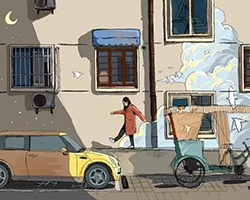 鼓楼的东首是一间间鳞次栉比的毛线店,色彩斑斓的毛线团,或挂在墙上,或堆在店旁,在寒风瑟瑟的老街上,吸引着女人们的驻足流连,成了老城年关的一大街景。西首则是琳琅满目的服饰店,火红的呢绒大衣,黑亮的皮衣外套,召唤着逛街的人潮。