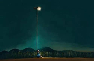 路上站着一个灯