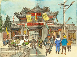 有一个习俗可能是外地所没有的:看围屏。硬木长方框,约三尺高,尺半宽,镶绢,上画一笔演义小说人物故事,灯节前装好,一堂围屏约三十幅,屏后点蜡烛。这实际上是照得透亮的连环画。看围屏有两处,一处在炼阳观的偏殿,一处在附设在城隍庙里的火神庙。炼阳观画的是《封神榜》,火神庙画的是《三国》。围屏看了多少年,但还是年年看。好像不看围屏就不算过灯节似的。