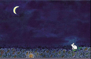 在众多的兔姐妹中,有一只白兔独具审美的慧心。她爱大自然的美,尤爱皎洁的月色。每天夜晚,她来到林中草地,一边无忧无虑地嬉戏,一边心旷神怡地赏月。她不愧是赏月的行家,在她的眼里,月的阴晴圆缺无不各具风韵。