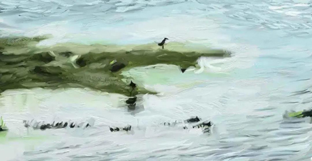 芦苇正长到和我一般高,齐刷刷,绿莹莹,宽宽的叶子上绣积着一层茸茸白毛,纯净到纤尘不染。我漫步在芦苇荡里青草铺垫的小道上,似可感到正值青春期的芦苇的呼吸。我自然想到那位身姿窈窕的淑女,也许在麦田里锄草,在桑树上采摘桑叶,在芦苇丛里聆听鸟鸣,高原的地脉和洽川芦荡的气韵,孕育出窈窕壮健的身姿和洒脱清爽的质地,才会使那个万众景仰的周文王一见钟情,倾心求爱。我便暗自好笑少年时期自己的无知与轻狂,好逑的君子可是西周的周文王啊,哪里还有比他更能称得起君子的君子呢!一个君王向一个锄地割麦采桑养蚕的民间女子求爱,就在这莽莽苍苍郁郁葱葱的芦苇荡里,留下《诗经》开篇的爱情诗篇,萦绕在这个民族每一个子孙的情感之湖里,滋润了两千余年,依然在诵着吟着品着咂着,成了一种永恒。