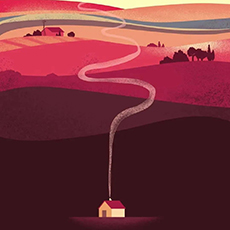 如果大清早刮东风,那时空气潮湿,炊烟贴着房顶朝西飘。清早柴火也是潮潮的,冒出的烟又黑又浓。