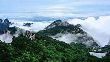 那时我喘息甫定,他们却催促我上观察台去。果然,雨过天又青。天都突兀而立,如古代将军。绯红的莲花峰迎着阳光,舒展了一瓣瓣的含水的花瓣。轻盈云海隙处,看得见山下晶晶的水珠。休宁的白岳山,青阳的九华山,临安的天目山,九江的匡庐山。