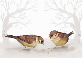 它那么小,落在枝上就是近视眼中的一个黑点,连逗号还是句号都看不清楚,低飞、跳跃、啄食、梳理羽毛,发出永远幼稚的鸣叫,在季节的变化中艰忍或欢快,追逐着交配,有责任感地孵蛋和育雏……活着。