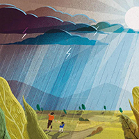 打开格子门,纷乱的玉屑斜飞进来。后山也罩在茫茫雪雾之中。一阵大风吹来,积雪漫天飞舞。午后愈降愈猛,路上连马车也走不动了。积雪沉沉,压弯了树枝。不知什么树折断了,传来两三声清脆的响声。