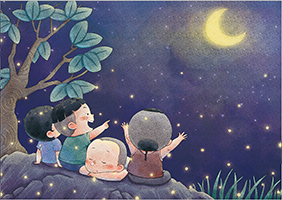 追逐着月亮下他们的影子