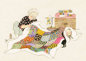 我为她找出笔和纸。奶奶在纸上快速地画了起来:晨曦,一个高大的身影拉着平板车,车上坐着一个举着风车的小女孩……