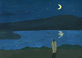 第二天彻底醒过来时,天已大亮。窗外的山,哪还有满月时的盛景?消尽了白雪而又没有返青的树,看上去是那么的单调。虽然寻不见月亮的踪迹,但我知道它因为昨夜那一场热烈的燃烧,留下了缺口,不知去哪儿疗伤去了。因为它燃烧得太忘我了,动了元气,所以不管怎么调理,此后的半个月,它将一点点地亏下去。待它枯槁成弯弯的月牙儿,才会真正复苏,把亏的地方,再一点点地盈满。它圆满后,不会因为一次次地亏过,就不燃烧了,因为月亮懂得,没有燃烧,就不会有灰烬,而灰烬,是生命必不可少的养料。