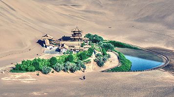 一汪泉水,清澈如仙女的清泪,周围任何一座沙山倾泻下小小一角,都会把月牙泉埋掉,但是尽管棱角分明、曲线妩媚的沙山就立在那里,千百年来,月牙泉却安然无恙。