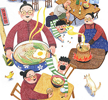 高三那年,父亲开始让我为顾客煮面条。有一天中午,我想给自己煮碗面吃,就走到桑拿房般热气腾腾的灶台边,煮着面条的水滚滚翻腾,不停地冒着蒸气。我从干净的碗架上拿了一只碗,到水龙头下冲洗。