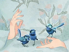爸爸拍着我的肩说:“没关系,明天我们再飞给你看。”我点点头,然后请鸟儿们到树下:“下来吃点儿面包吧,你们飞来飞去真累哟。”