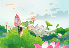 当然,如同荷花一样半开的,还有天空中那弯上弦月,似乎被谁狠心地咬去了一块,半开着,不圆满。但是你并不伤感或忧心,因为你知道,有这个空缺存在,如同半开的花,还有花开到圆满的大段大段的时日。随着日子一瓣一瓣地绽放,那弯新月的空缺将渐渐趋近圆满,你的心也就不断地趋近圆满。