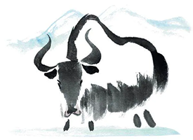 草原上的牦牛中总有些公牛不愿待在牛群里,独自走开,漫无目的地流浪,到这个牛群里走一圈,又到一个山谷或河边待几天。它一边反刍,一边把眼睛瞪得大大的,有时候山谷里下大雨,雷电就劈在它身旁,它也一动不动,人从它旁边经过,它都不看一眼。它体型大到一定程度,强壮到一定程度时,就无所畏惧。你走近它时,就能感受到它的气场。