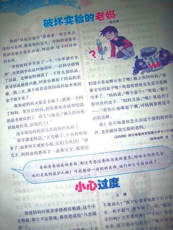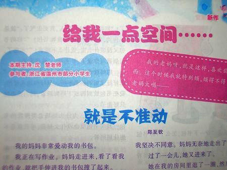 童联社温州作文网百草园文学塾学员郑至钦《就是不许动》、李萧宇《日记本不许动》、孙乐伊《破坏实验的老妈》、王靖《小心过度》、陈丰《听笑话精神好》等5篇佳作一齐发表在广西师范大学出版社、中央教科所课程教学研究部主办的《作文大王》2010年第一、二期上。 该刊特邀沈楚老师主持新年第一期的“新作文课堂”专栏,主题命题为“给我一点空间”。