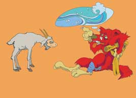 狼被狗所咬,伤势很严重,痛苦地躺在巢穴里,不能外出觅食。他感到又饿又渴,这时,他看见一只羊,便请求他到附近的小河里为他取一点水来。“你给我一点水解渴”,他说,“我就能自己去寻找食物了。”“是呀”,羊回答说,“如果我给你送水喝,那么我就会成为你的食物。”