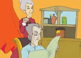 一个中年男人有两个妻子,一个年轻,一个年老,她们都非常地爱他。当男人的头发渐渐变得灰白时,年轻太太感到很不高兴,因为这使他看起来显得很老。于是,她每晚帮他梳头时都拔去一些白发。但是,年老的太太很高兴他的男人变老,因为这样自己就不会被错认为是他的妈妈了。于是,每天早晨帮他梳头时都拔去一些黑发。结果,不久后男人发现自己变成了秃子。