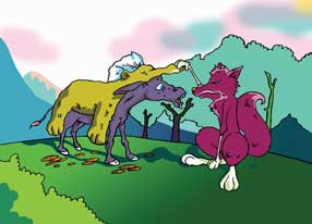 有头驴发现一张狮子皮,他披着狮子皮走进村庄。所有的人和动物见到他走过来都逃走了。驴感到很得意,他高声地嘶叫,却被人认了出来。他的主人跑过来打了他一顿。不久,一只狐狸也跑过来,对他说:“哦,你一张嘴我就知道你是驴。”