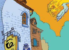 风和太阳两方为谁的能量大相互争论不休。突然,他们看到一个行人走在路上,太阳说:“谁能使行人脱下衣服,谁就更强大。”太阳藏在乌云后面,风开始拼命地吹,风刮得越猛烈,行人越是裹紧自己的衣服。太阳出来了,暖暖地晒着行人,行人感到很热,很快就把外套脱了下来。