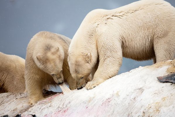 北极熊享用长须鲸尸体
