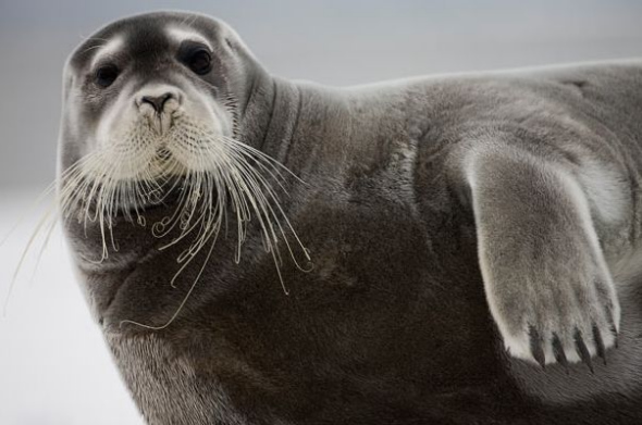 冰山上的一只髯海豹。拍摄于斯瓦尔巴特群岛。