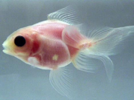 2009年底,日本三重大学的研究人员通过选择性培育浅色金鱼,养育出透明金鱼。这只金鱼拥有透明的鳞片和皮肤,因此很容易看到它体内的很多器官。三重大学的副教授田丸浩说:“这种金鱼可以比其他金鱼生长的更大,你可以看到它的内部器官。”这种金鱼的寿命长达20年,体长可达10英寸(25厘米)。毫无疑问,普通公众会对水族馆里的透明金鱼感到不满,不过三重大学的研究人员培育这会金鱼的真正原因,是为了减少(甚至消除)在该校的生物学课上解剖金鱼的必要。这一做法会使无数对解剖金鱼感到不安的学生非常开心,无数金鱼也因此可以保住性命。