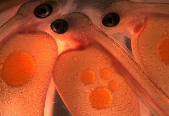 鲑鱼胚胎存活时间很长,最终让曼荷莲女子学院的学生哈鲁卡·福基玛基(haruka fujimaki)拍下了这张照片。作为马萨诸塞州西部大西洋鲑恢复计划的一部分,福基玛基饲养了一些鲑鱼。一天,她采用明视场光学技术捕捉到大西洋鲑幼体的照片。三个幼体刚刚孵化,还同卵黄囊连在一起以吸取营养。它们的眼睛直径约为2毫米。