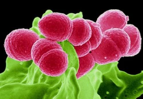 经常生长在长链上的球状细菌——化脓性链球菌(streptococcus pyogenes)除了能引发脓疱病等较轻感染外,还能引起链球菌中毒性休克综合征(streptococcal toxic shock syndrome)等致命疾病。这种细胞拥有很多防卫机制,即已知的毒性因素,这使得它们能逃过免疫系统的“法眼”,通过组织进行扩散。这张图片显示的是人类嗜中性粒细胞正在通过嗜菌作用,吞噬化脓性链球菌。白细胞是人体的第一道安全防线,嗜中性粒细胞属于白细胞。