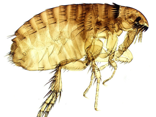 这是一只普通的跳蚤。跳蚤依靠宿主的血液生存。许多宠物爱好者都知道,跳蚤会在被褥上产卵并孵化幼虫。跳蚤幼虫靠吃被褥、皮肤细胞以及成年跳蚤的粪便长大。