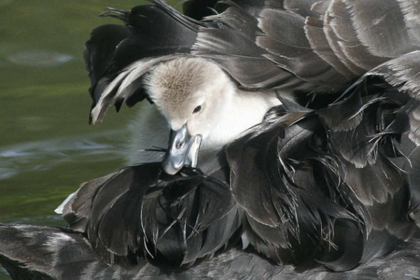 小黑天鹅:“搭个便车”。摄影师:凯-曼特里普。拍摄地点:英国野生鸟类与湿地基金会斯林桥湿地研究中心。