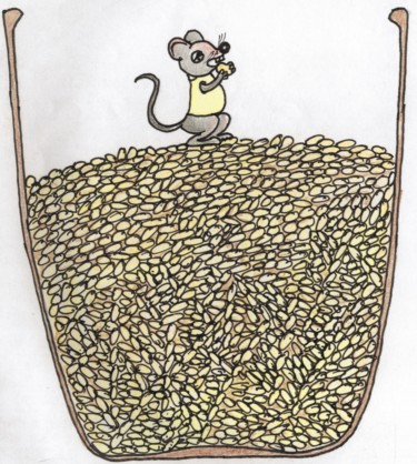 一只老鼠掉进了一个盛着米的大缸里。鼠大喜,在米缸中吃了睡,睡醒了再吃。日子一天天悠闲地过去了。老鼠也曾为是否要跳出缸去进行过思想斗争与痛苦的抉择,但终究未能摆脱白花花的大米的诱惑。直到有一天它发现米缸见了底,才觉得以米缸现在的高度自己就是想跳出去了,也没有这个能力了。