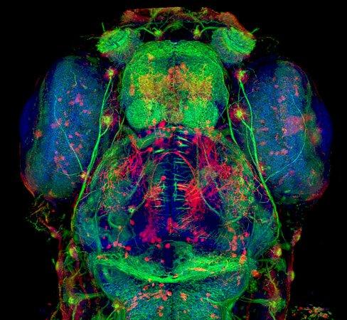 斑马鱼在今年看来非常受欢迎。美国盐湖城犹他大学的希迪奥·奥特苏纳(hideo otsuna)拍摄的这张5天大斑马鱼头的照片获得了2010年尼康微观摄影大赛第二名。除了在水族馆供人欣赏外,斑马鱼还常常用于遗传学研究。世界上还 有一份专门聚焦于斑马鱼的科学期刊——《斑马鱼》(zebrafish)。根据发表于《自然》杂志上的一篇论文称,斑马鱼在某些条件下可以再生出鳍、皮 肤、心脏和大脑等器官。