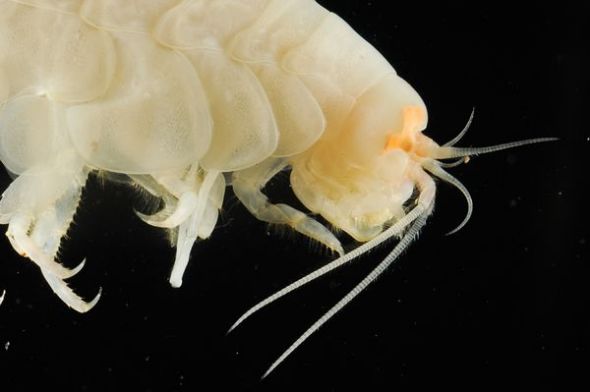 2010年在深度达到4.3英里(约合7000米)的海沟内拍摄,呈现了一只片脚甲壳类动物。在世界各地的海沟,人们曾发现很多片脚类动物和虾类的身影。但对于这些动物所属的深海家族,科学家却知之甚少。普莱德表示,科学家需要解答的一大疑问是,生活在海下大约2.5英里(约合4000米)的深海动物是否会进入超深渊带?这是海洋的最深处,深度在6.8英里(约合1.1万米)左右
