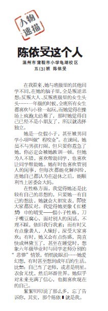童联社温州作文网学员陈依旻佳作《陈依旻这个人》在2010年12月5日温州都市报新苗版发表。