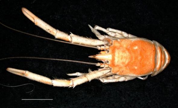 这种东方扁虾学名“munidopsis andamanica”,此前只在日本、印度尼西亚、斐济和台湾周围的海域被发现。其最著名的所在当属2009年的一项发现,当时科学家发现这种东方扁虾以坠入海底的原木和树枝为食。此次科考过程中,科学家又在澳大利亚海域发现这种东方扁虾的身影。它们似乎利用强有力的牙齿,碾碎海床上的木头。它们的胃能够分泌一种酶,帮助消化这种纤维性物质。