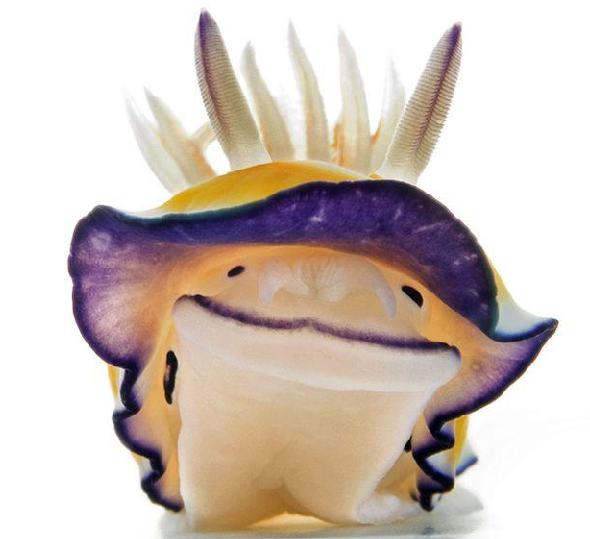 只有手指大小的裸鳃海恬蝓(俗称海兔),是腹足纲家族成员,裸鳃这一特征将它们与其他海蛤蝓区分开来。