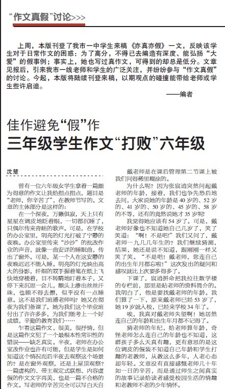沈楚老师撰文日报 参加“作文真假”讨论