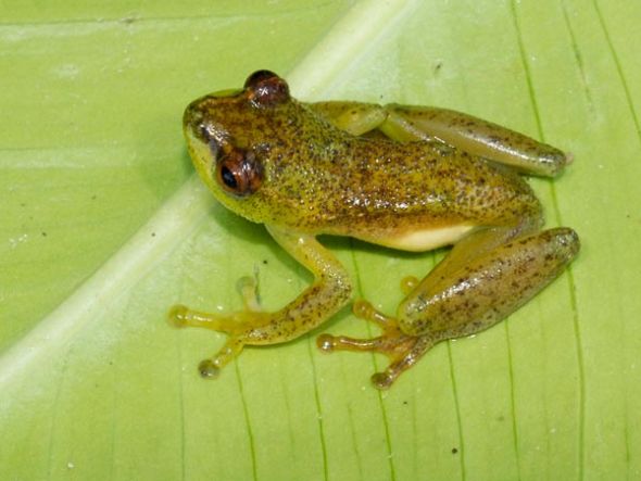 科考队在刚果(金)东部卡胡兹别加国家公园的森林发现的青蛙,学名“hyperolius chrysogaster”。这座国家公园的森林比较健康,是已知唯一的hyperolius chrysogaster栖息地。格林鲍姆的网站指出,刚果(金)东部的其他森林遭到砍伐,为农业生产腾出空间。森林遭到破坏威胁到青蛙、山地大猩猩以及其他动物的生存。