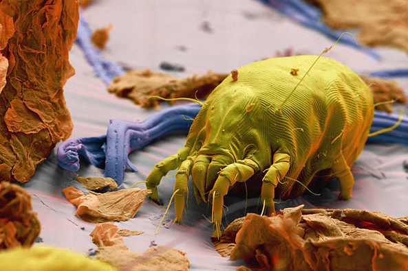 尘螨喜食死皮,喜欢生活在人类居住的地方。在绝大多数房屋内,它们的数量都是一个未知数。