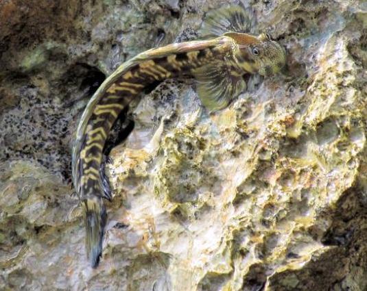 一条太平洋高冠鳚趴在露出水面的一块岩石上,据奥尔德说,它在这里“感觉很舒服”。在这项研究期间,奥尔德及其科研组观察并记录了单个太平洋高冠鳚的行为,然后捕捉体长大约2.4英寸(6米)的这种鱼,对其进行测量,并给它们拍照。科学家利用铅笔或发夹戳太平洋高冠鳚,促使它们跳入一个小网里。奥尔德说:“然而结果出乎意料,它们宁愿跳到任何地方,也不跳入网中,即便它们碰巧落入网中,也会在你用手阻止它们之前,很快跳出来。在今年最近进行的一次旅行中,我的一名同事形容捕捉这种鱼的过程是‘我一生最恼火的经历’。这种鱼已经习惯陆上生活,它向我们展示了这些鱼在陆地上生活是多么灵活。”