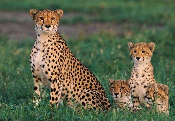 通常情况下,母猎豹一胎生3子,所有幼仔均要与它们共同生活一年半到两年时间,而后走上独立谋生之路。在与幼仔交流时,母猎豹也会发出类似家猫的咕噜声。