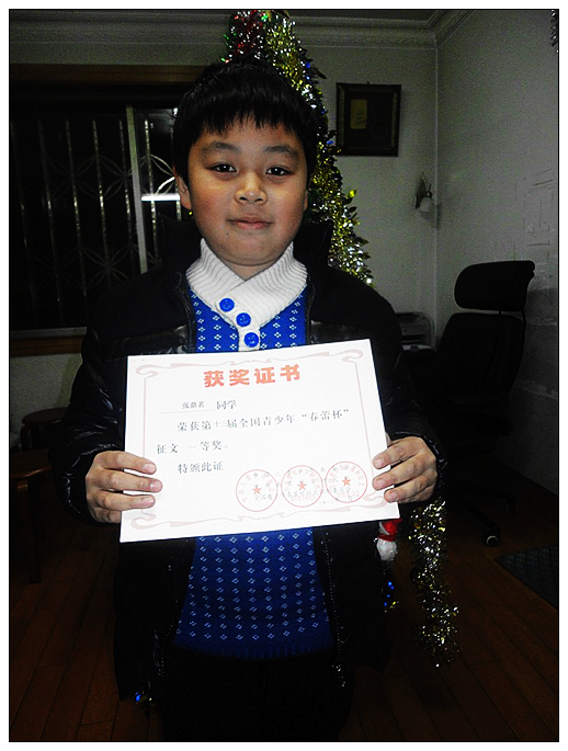 童联社温州作文网学员张鼎茗获第十三届全国青少年“春蕾杯”征文比赛一等奖(三、四年级组)。