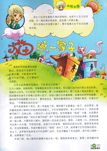 童联社温州作文网学员潘锌窈佳作《怕虫的小t》、叶怀谦佳作《猫这一家子》在青岛《开心学堂》杂志2012年首期发表。